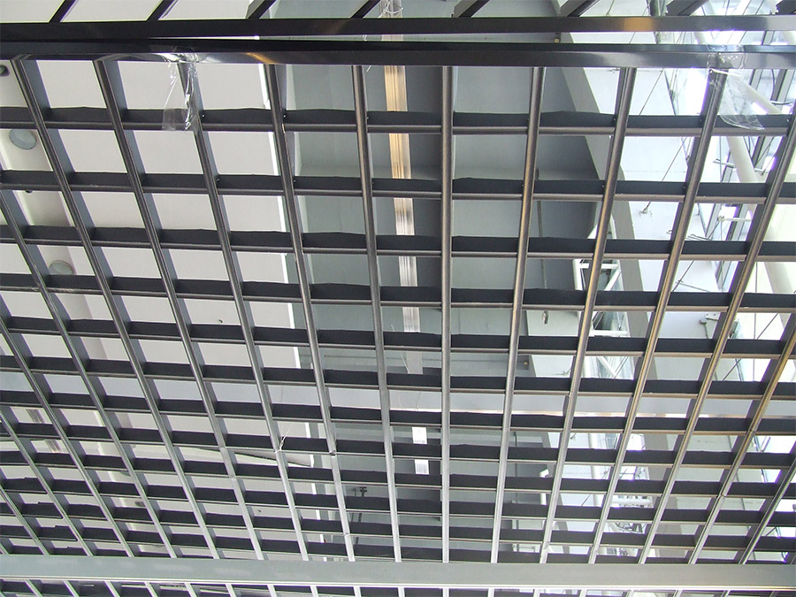 2、鋼格板作為吊頂使用,具有外形美觀、經(jīng)久實用:熱浸鋅表面處理使其具有相當好的不易腐蝕能力,表面光澤美觀。